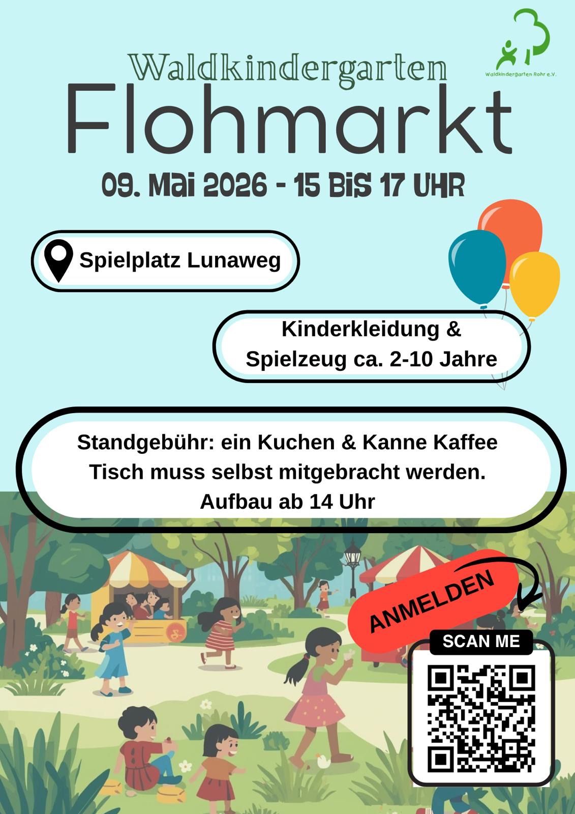 Am 09. Mai 2026 wird der Spielplatz Lunaweg zum kleinen Schatzsucher-Paradies: Von 15 bis 17 Uhr lädt unser Flohmarkt zum Stöbern, Feilschen und Entdecken ein – rund um Kinderkleidung und Spielzeug (ca. 2–10 Jahre).